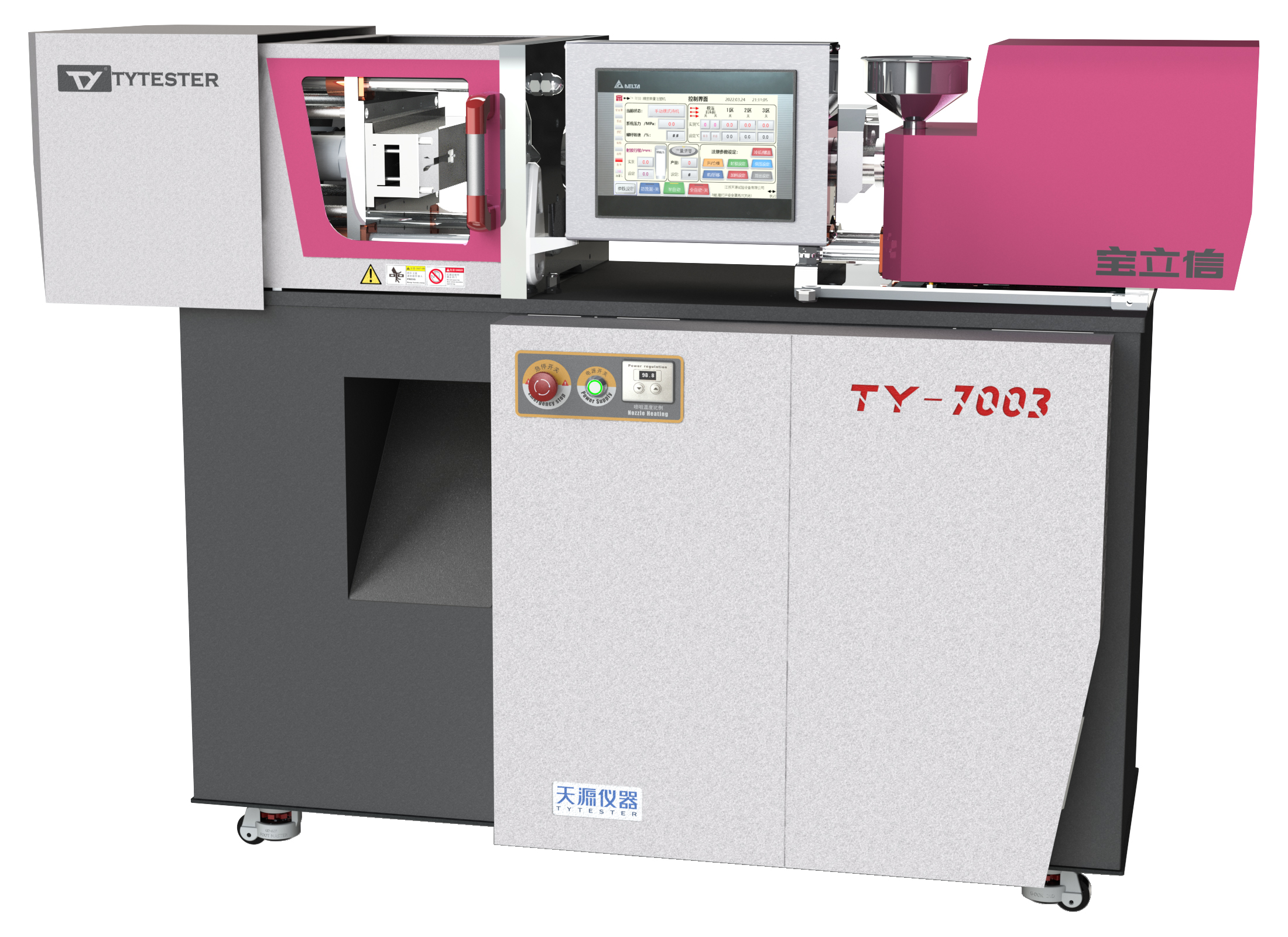 上海金世沃新材料科技有限公司向我司采購一臺TY-7003小型液壓注塑機,該機對生產用機進行了微縮和改進,具有體積小、可移動性強,適用于課堂教學和小型工件的制作。該產品包括開模合模部件、溶膠注射部件、機身、加